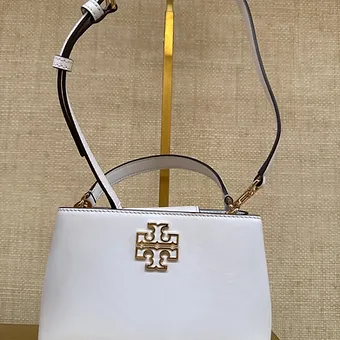 Tory Burch Britten small top handle bag, kompakt boyutu ve şık tasarımıyla günlük ve özel kullanım için ideal bir çantadır.
