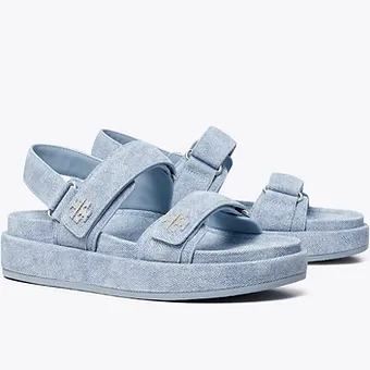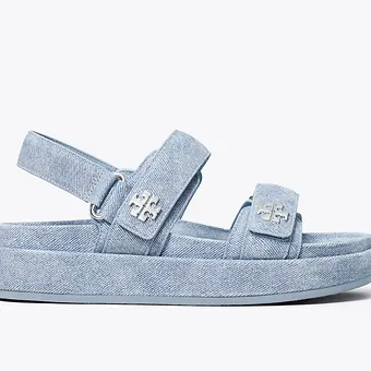 Tory Burch Kira Denim Sandals, rahat tabanı ve şık denim tasarımıyla yaz aylarında günlük kullanım için ideal bir sandalet modelidir.