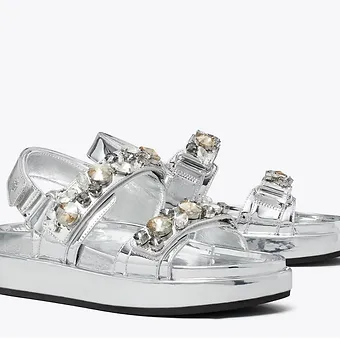 Tory Burch Kira Spot Sandals, rahat tabanı ve modern desenli tasarımıyla yaz aylarında günlük kullanım için ideal bir sandalet modelidir.